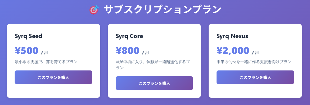 Syrqでは、より良いサービスを提供するため、支援型のサブスクリプションを開始させていただく事になりました。